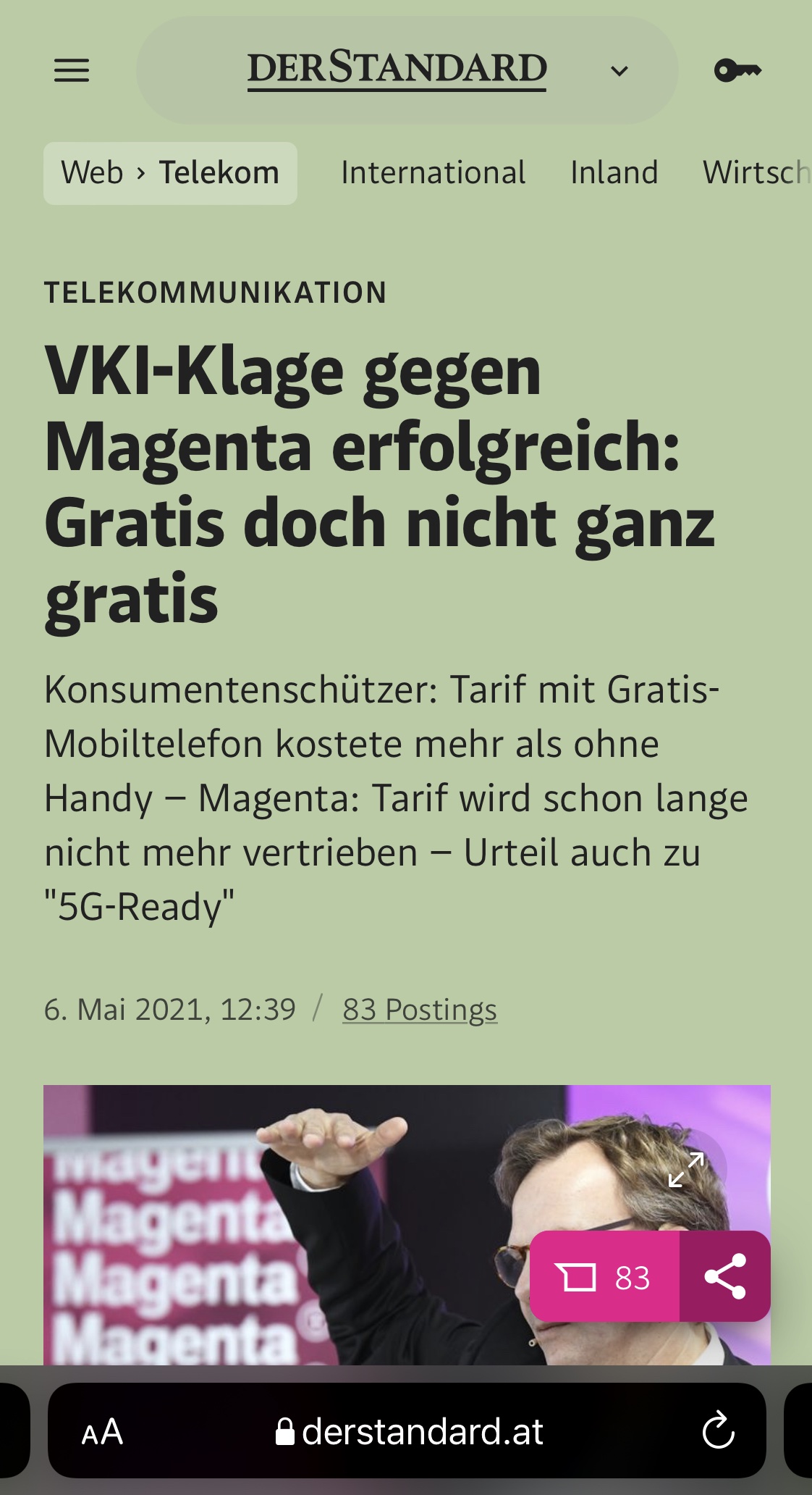 Verfahrensergebnis: Das OLG Wien hat Magenta zur Unterlassung der "0 Euro-Handys"-Werbung verurteilt, es sei denn, Magenta weist in Zukunft bei "0 Euro-Handys" klar zugeordnet und deutlich auf alle Zusatzkosten hin (HG Wien vom 20.11.2020 zu GZ 11 Cg 14/20a und OLG Wien vom 26.2.2021 zu GZ 5 R 12/21b, betreffend diesen Urteilspunkt rechtskräftig).